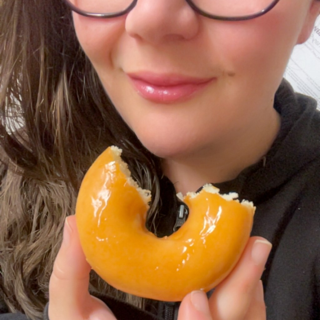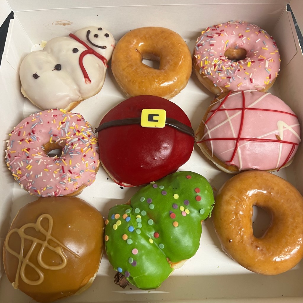 Except… instead of the colourful, Christmas-themed variety box I’d been picturing in my head, he brought home the plain original glazed ones.