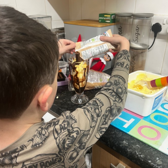 Elvis & Toffee decided Sundays are for sweet things — so they whipped up their very own Sundae Station! 🍫🍓 They set out bowls of toppings, fancy sundae glasses, sauces, and sprinkles galore for the kids to build their ultimate after-dinner dessert creations. Even the elves had their own tiny bowls ready for scoops of mischief and marshmallows!