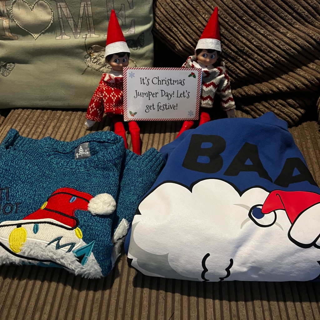 Today’s the boys’ official Christmas Jumper Day at school — and it’s also Christmas Dinner Day, which always makes it extra fun (and a little bit messy!). The elves couldn’t resist joining in, so I dug out their mini knits and set them up before breakfast. The boys burst out laughing when they spotted them — apparently, Elvis has “the best drip” according to my teen 😂