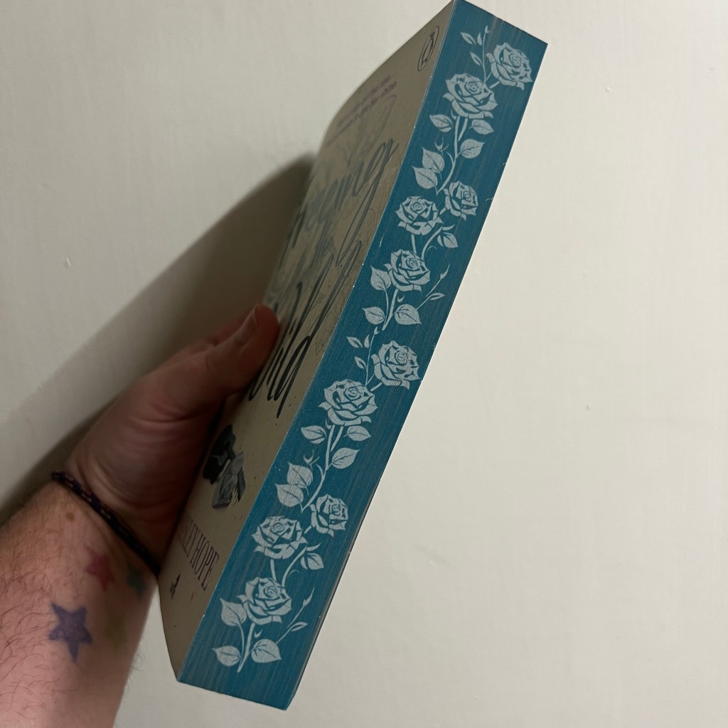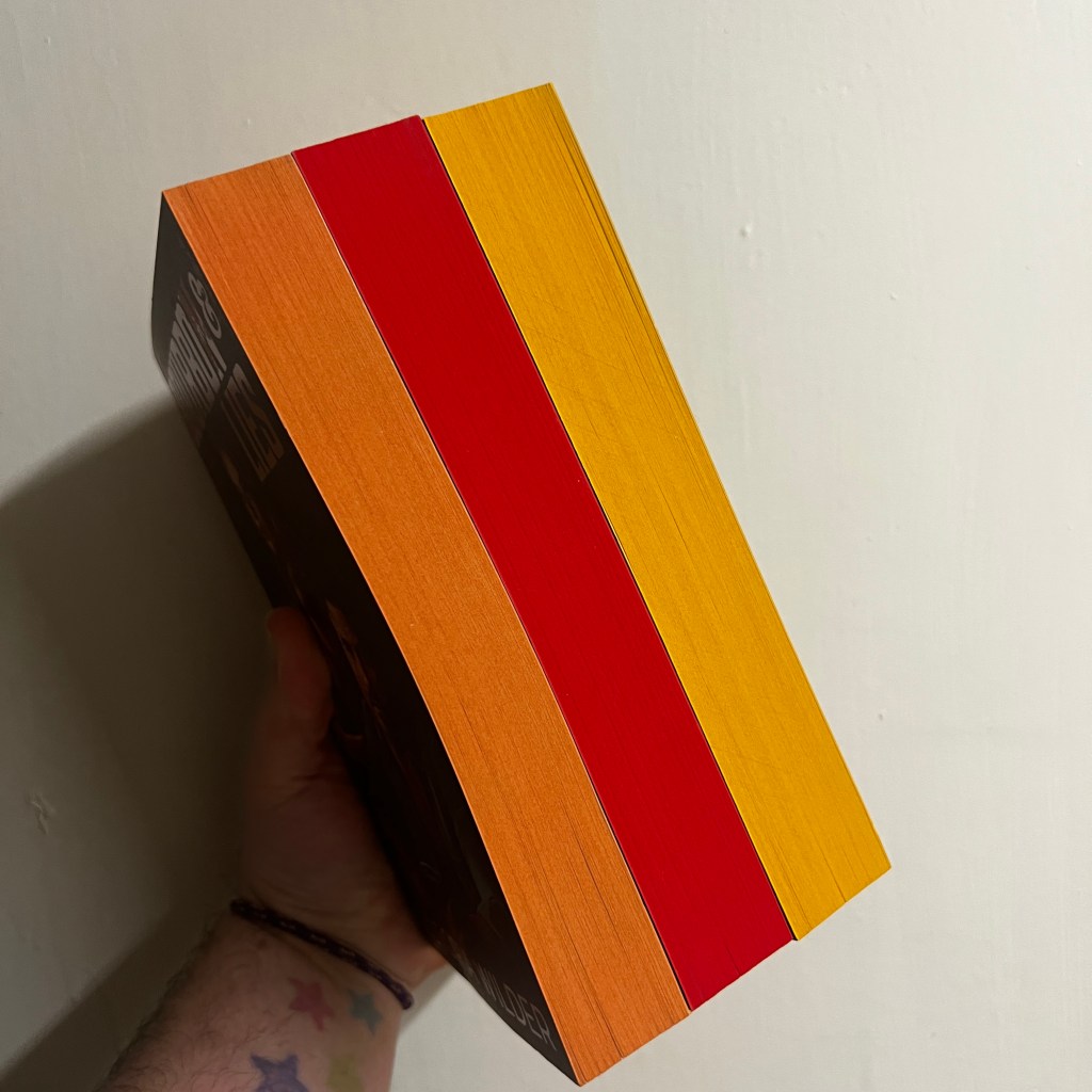The sprayed edges match the title colours perfectly and look chef’s kiss together on a shelf.