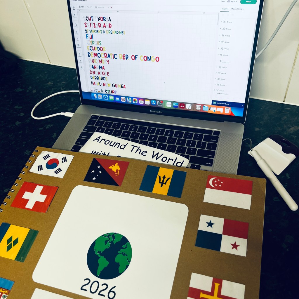 To preserve everything, we also create a scrapbook each year. The manager orders the blank book, I fire up my Cricut for the cover and country name cut-outs, and as the months go by, I add artwork and photos. It becomes a beautiful keepsake of the childrenās cultural journey.