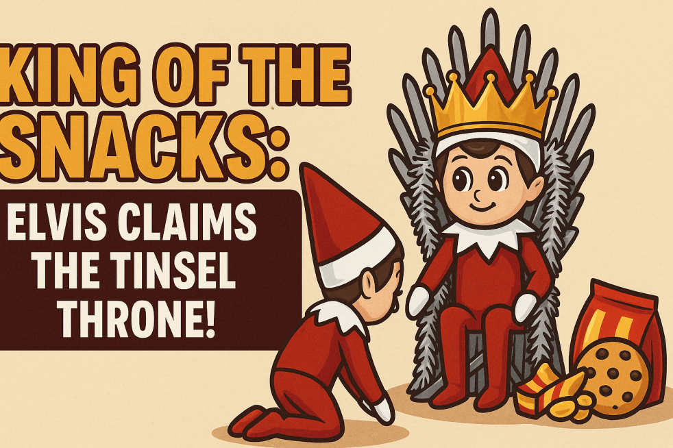 Elvis crowned himself the Snack King, with Toffee as his loyal sidekick. The simple setup turned out to be hilarious, proving less is more when it comes to elf antics!